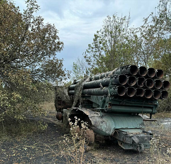 Destroyed Russian military equipment often litters Ukrainian fields and planting areas. Photo by Andrii Zhuravliov