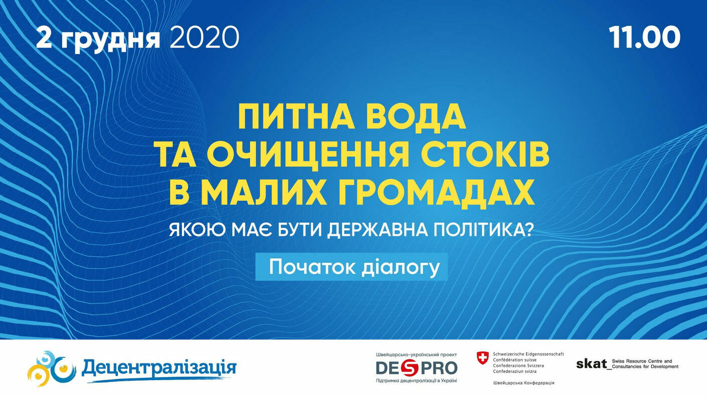Під час заходу будуть розглянуті основні проблемні питання пов’язані з доступом до питної води та санітарними умовами в малих громадах України, а також можливі рішення, які посприяють виправленню ситуації та виробленню ефективної державної політики у водній галузі.
