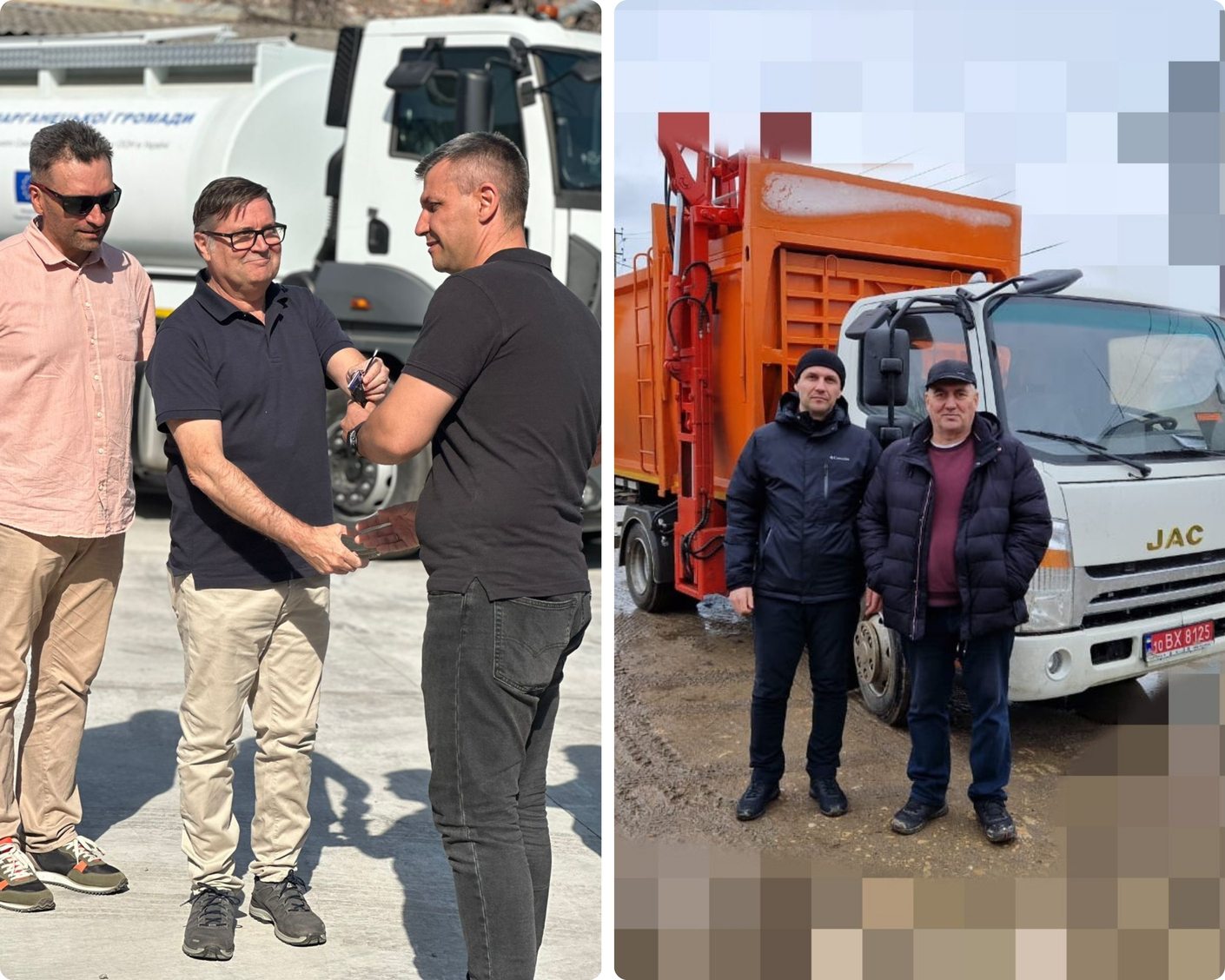 ей сміттєвоз Бериславська громада отримала від VNG International у рамках проєкту «Підтримка відновлення місцевого самоврядування та відбудови і реконструкції громад в Україні». Зараз він знаходиться у безпечному місці, чекаючи, поки зникне небезпека з боку російських дронів. Також у рамках проєкту громада отримала подрібнювач деревини та навантажувач до трактора зі сніговим відвалом (фото зліва)